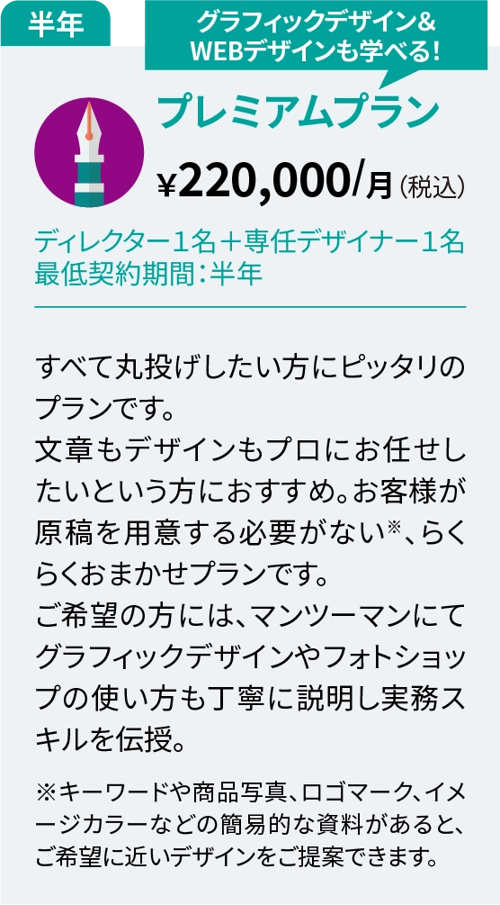 原稿や素材をご用意いただくのが前提ですが「まだ内容を決めきれていない…」という状態でもOK。ヒアリングを通じて形にしていきます。(初稿までお時間を頂きます)